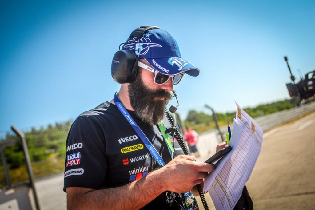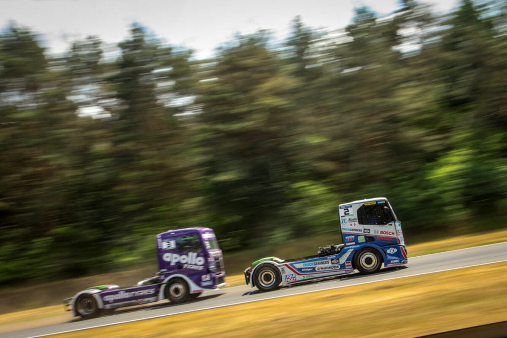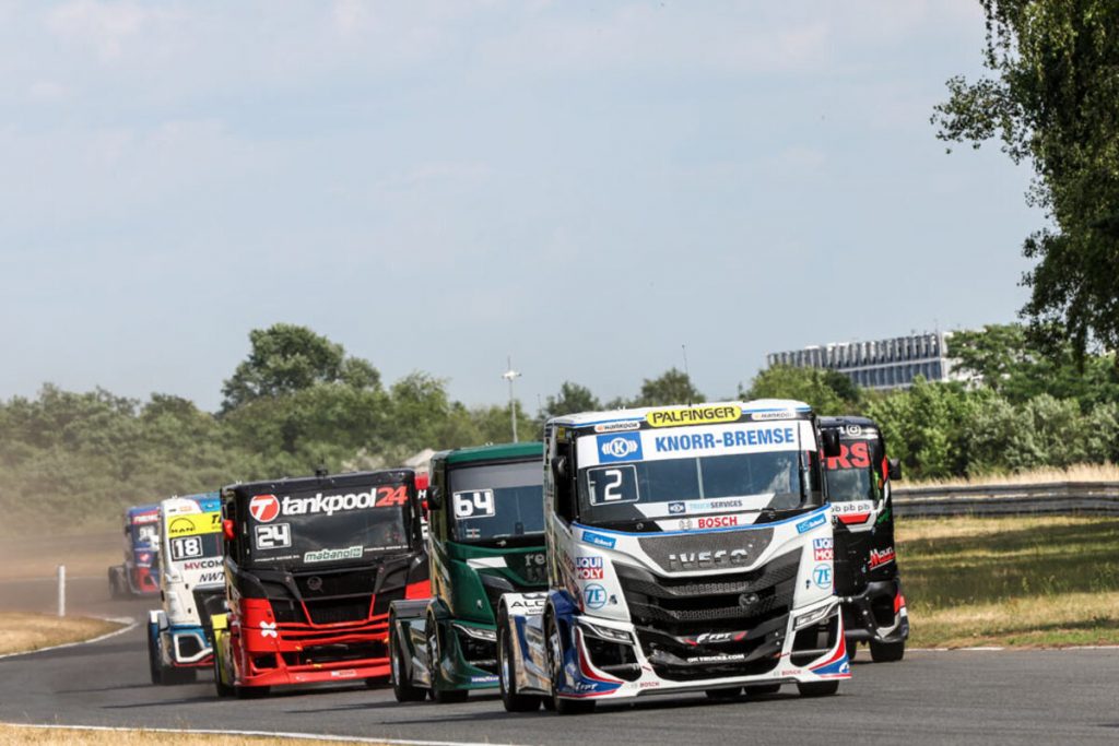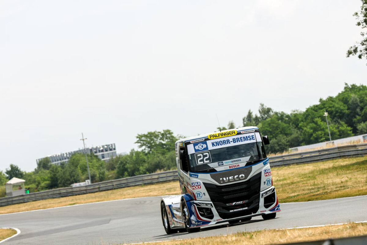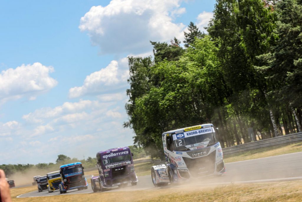 Beim Start zum ersten Sonntagsrennen kam es dann zu einer heftigen Kollision, einem schweren Abflug von Antonio Albacete und schließlich einem direkten Rennabbruch. Jochen ließ sich von all dem aber nicht beeindrucken und sicherte sich beim Neustart direkt die zweite Position hinter Norbert Kiss. Und wie am Vortag wurde, es ein rundenlanger Zweikampf mit Sascha Lenz, den der Iveco-Pilot erneut für sich entscheiden konnten.